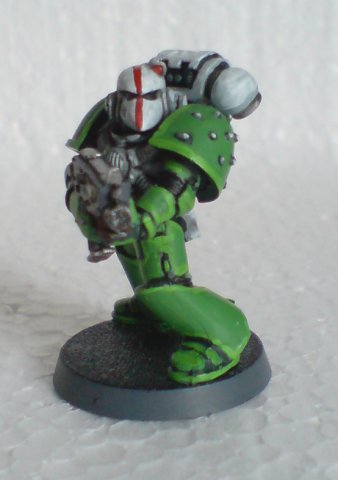 I decided upon a custom chapter, the revised backgrounds for the marines doesn't impress me much, to me marines are normal humans, with various cybernetic upgrades, excellent equipment and training second to none, but humans non the less. I decided on the military from a custom planet, dropping the WH 40,000 background totally though using Codex: Space Marines as the force guide so they are all nice and game legal etc.